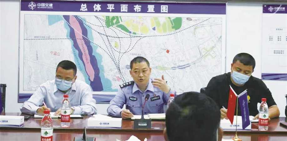 李盛(中)到辖区建筑工地普及反诈知识 |