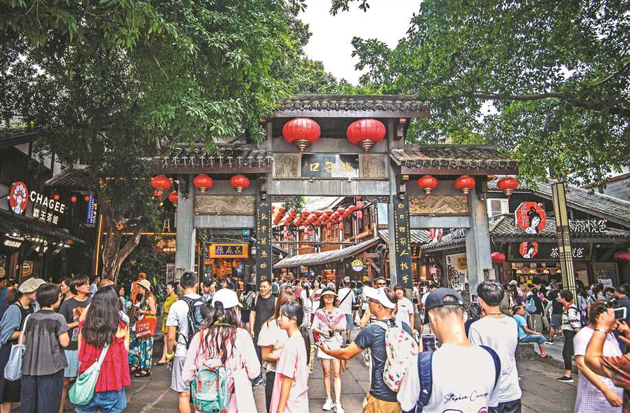 7月20日,磁器口古镇大门处,众多游客在此游玩。 记者 郑宇 摄/视觉重庆 |