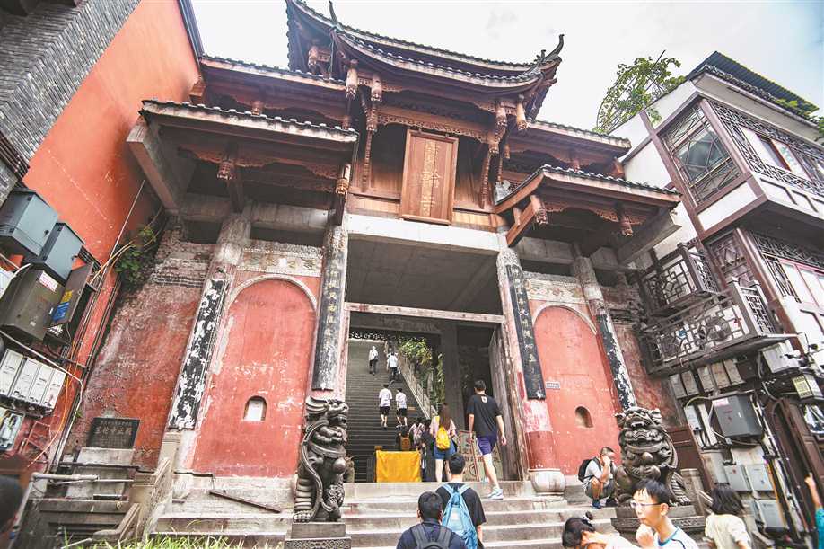 重庆市优秀历史建筑宝善宫,就是磁器口的历史文化遗产之一。这是一座穿斗式木结构建筑,建于清代,也是一处兼具开放胸怀与传统气质的场所。