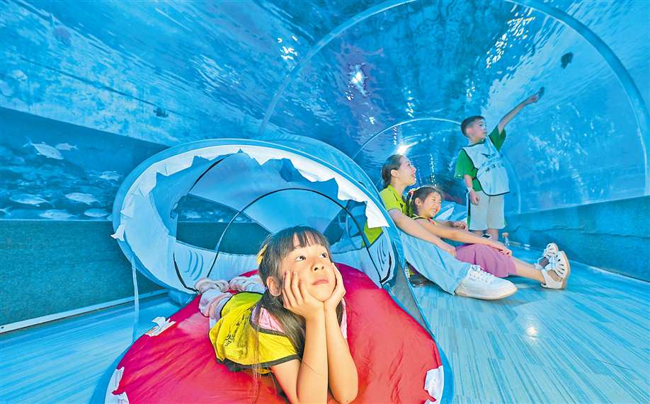 七月二十七日,重庆汉海海洋公园,孩子们夜宿海洋馆,在工作人员和老师的指导下,探索海洋生物的奥秘。记者 刘力 摄\视觉重庆 |