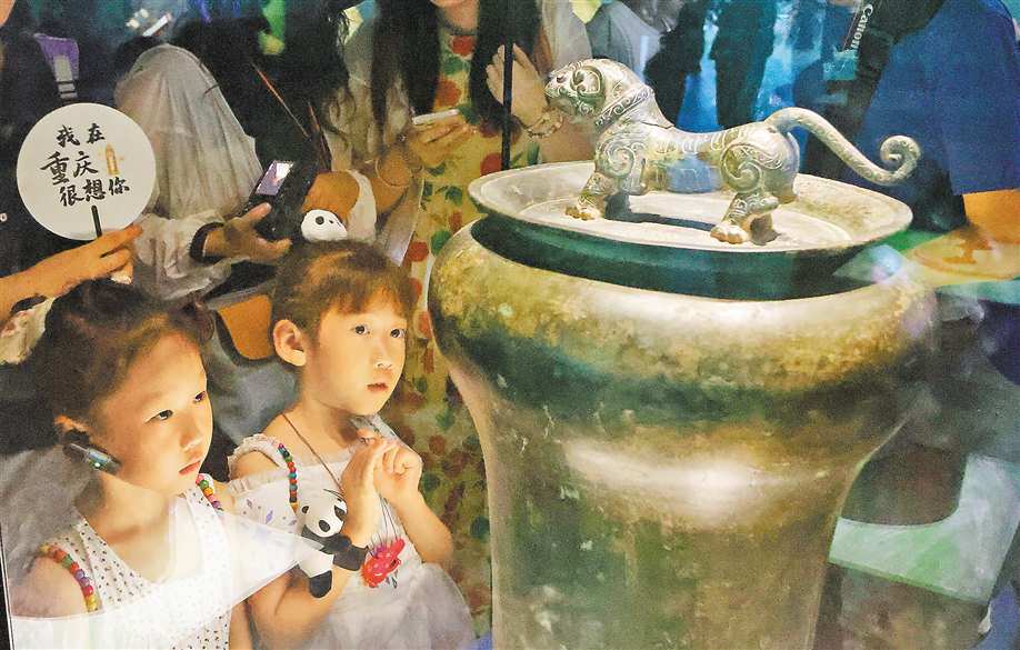 7月3日,重庆中国三峡博物馆,小朋友们正饶有兴致地了解重庆颇富魅力的独特历史文化。特约摄影 钟志兵/视觉重庆 |