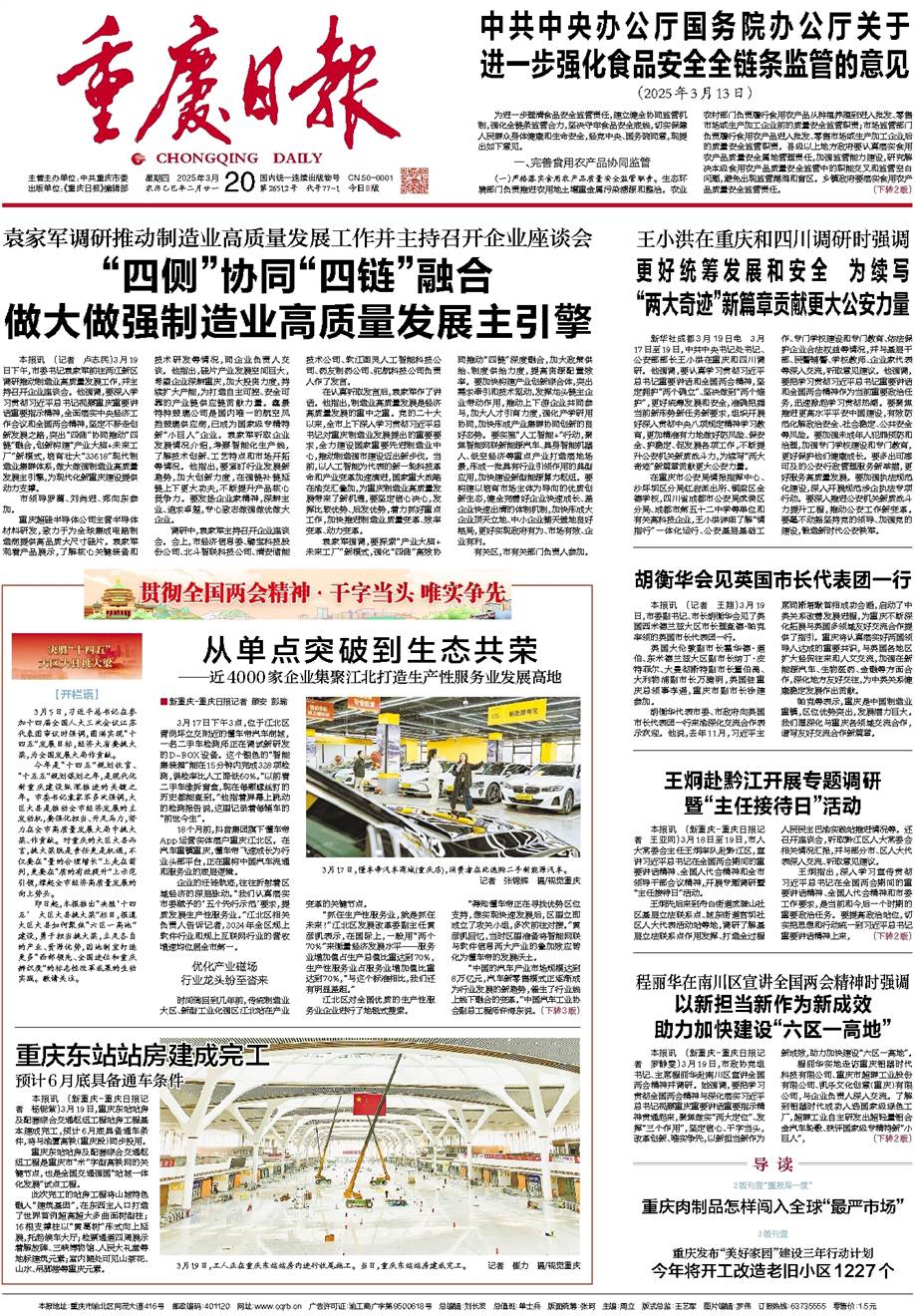 今年是“十四五”规划收官、“十五五”规划谋划之年,是现代化新重庆建设纵深推进的关键之年。市委书记袁家军多次强调,大区大县是推动全市经济发展的主发动机,要强化担当、开足马力,努力在全市高质量发展大局中挑大梁、作贡献。对重庆的大区大县而言,挑大梁既是责任更是机遇,不仅要在“量的合理增长”上走在前列,更要在“质的有效提升”上示范引领,撑起全市经济高质量发展的向上势头。