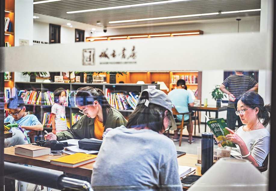 七月十九日,渝北区龙湖公园天街城市书房,家长带着孩子在此学习。首席记者 龙帆 实习生 王逍杨 摄\视觉重庆 |