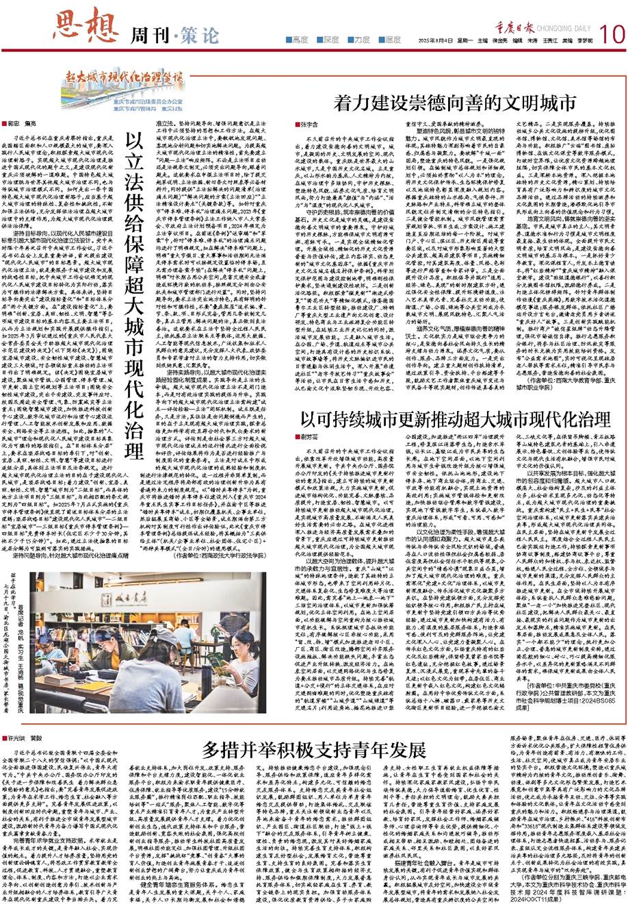 习近平总书记致全国青联十四届全委会和全国学联二十八大的贺信强调:“以中国式现代化全面推进强国建设、民族复兴伟业,青年大有可为。”中共中央办公厅、国务院办公厅印发的《关于进一步保障和改善民生 着力解决群众急难愁盼的意见》也指出,要“完善青年发展促进政策,为青年在求学工作、婚恋生育、社会融入等方面提供更多支持”。完善青年发展促进政策,以制度创新回应时代命题,重塑青年与城市、产业、社会的关系,有利于推进全市域青年发展型城市建设,激励新时代青年为奋力谱写中国式现代化重庆篇章贡献青春力量。