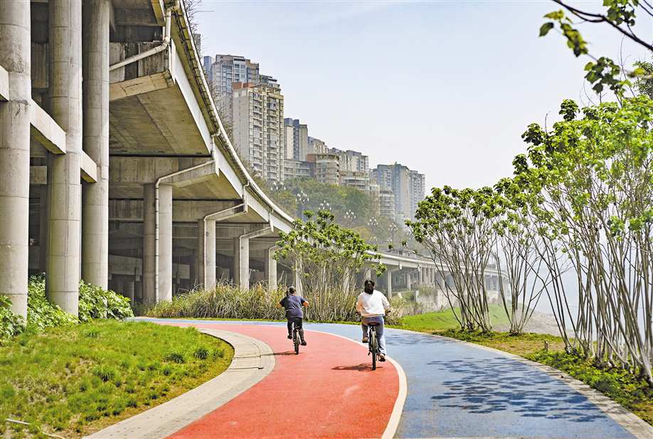 江北区在治岸治污的同时,还着眼“还江于民”,整体谋划实施了“三园两湾”5个项目,共建成步行道、骑行道约50公里、下江通道79个、景观平台9个、篮球场6个、羽毛球场2个、公共卫生间8个、停车场9个,在方便群众生活的同时,有效承接江北嘴金融核心区、鎏嘉码头、龙湖星悦荟等周边商业辐射,开辟新的商业空间。