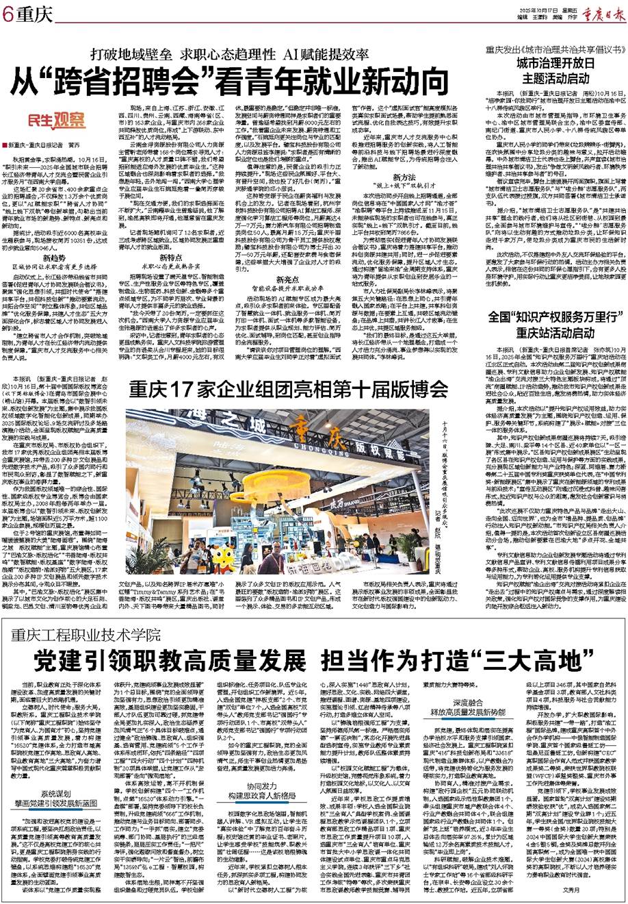 抓党建,最终体现和落实在提高办学治校水平和服务支撑引领国家、经济社会发展上。重庆工程职院紧扣重庆“416”科技创新布局和“33618”现代制造业集群体系,以产教融合为纽带,将党建优势转化为服务发展的硬核实力,打造职业教育高地。