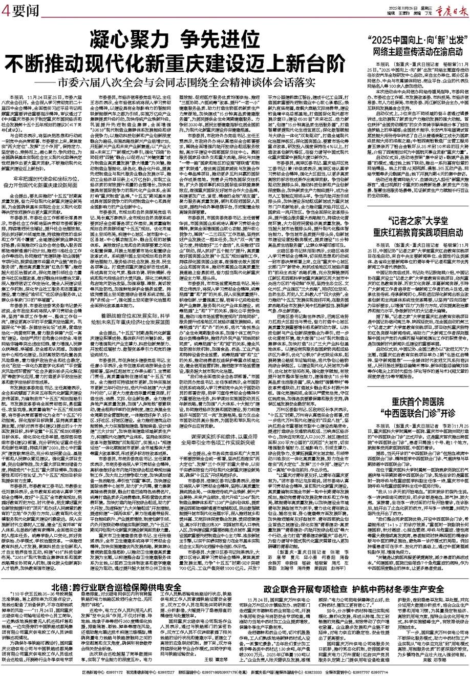 “我们整合两家医院优势,开设中西医联合门诊,希望能形成‘1+1>2’的诊疗效果。”重医附一院副院长何建国称,针对癌症、心脑血管病、呼吸与危重症、慢性病等重大疑难或高发疾病,患者能同时获得西医的精准诊断与中医的辨证施治,避免单一诊疗模式的局限。例如肿瘤患者可在手术、放化疗的基础上,通过中医调理减轻副作用、增强免疫力。